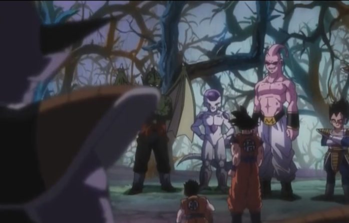 As Krillin begins to slowly lose his cool during the events of the previous episode, Krillin’s wife & child arrive at Master Roshi’s place to search for him. It’s here where she learns from both Roshi and Fortuneteller Baba that Krillin and Goku have entered the “Forest of Terror,” which is a place where they have to face illusions of enemies that they had battled before. Among the group of illusions are classic villains from DBZ’s past, such as Frieza, Dabura, Majin Buu, etc. And each of them has a symbolic history tied with Krillin since many of them either heavily injured his ass or have actually killed Krillin at some point. Progressively, it becomes more clear that Roshi’s true intention for the Herb hunt was a therapeutic solution to help Krillin overcome his inner-demons of inadequacy in battle.